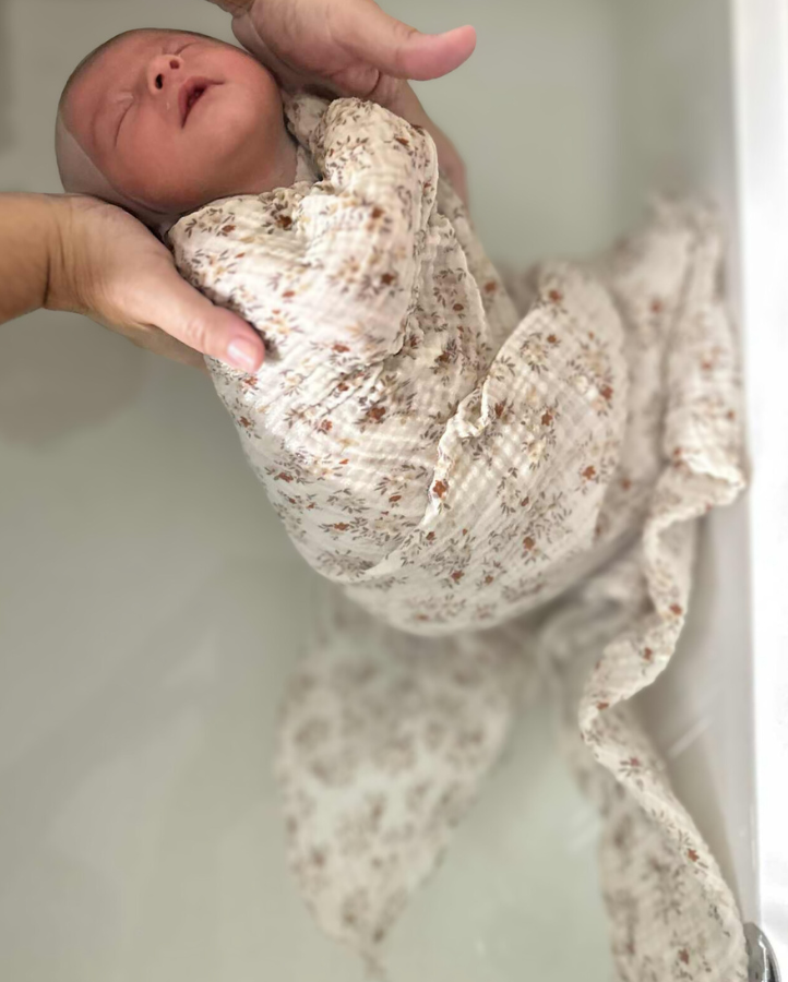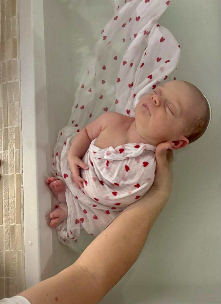 Dans l’eau chaude, le bébé retrouve des sensations familières, des souvenirs de vie intra-utérine. Il bouge à sa façon, tranquillement.
